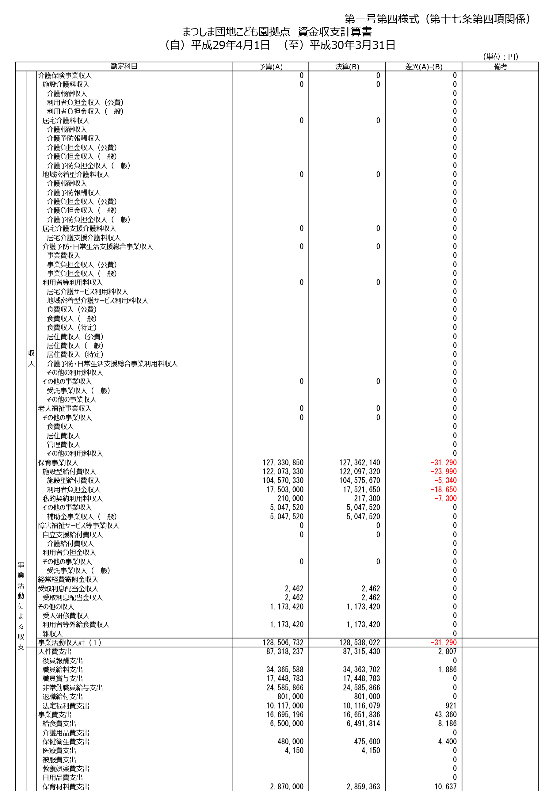 (自)平成29年(至)平成30年 資金収支計算書